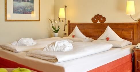 Die täglich inkludierte Halbpension beinhaltet das reichhaltige Frühstücksbuffet mit regionalen Produkten und wechselnden Highlights sowie ein Dinnermenü am Abend mit mediterranen, internationalen und bayrischen Spezialitäten.