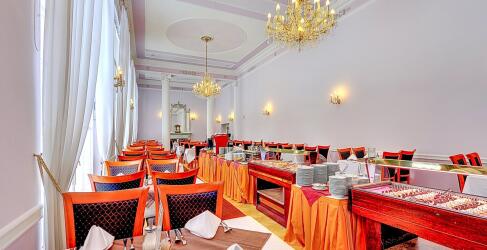 Starte deinen Tag im Hotel Radium Palace mit einem vielfältigen Frühstücksangebot. Hier erwarten dich frisch gebackene Backwaren, eine Auswahl an Käse und Wurst, gesunde Müslis, frisches Obst und Gemüse, sowie Heißgetränke und Säfte.